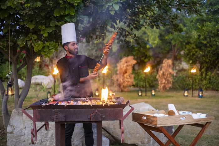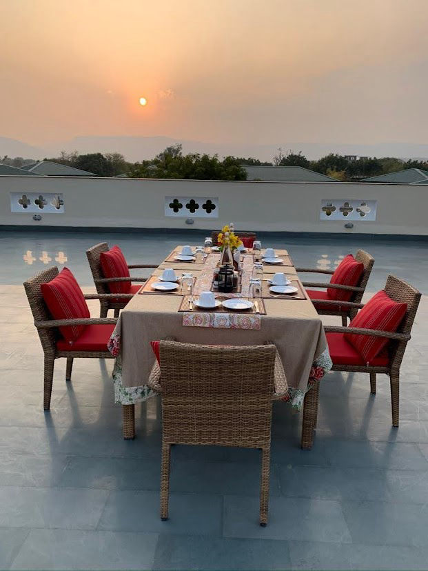 The terrace with panoramic views of the Aravalli resplendent with fiery sunsets and sunrise, dark moonless skies flaunting the Milky Way and other celestial bodies. Barbecues and themed dinners are best enjoyed under this blanket of a billion stars in the Eagle’s Nest.