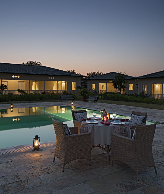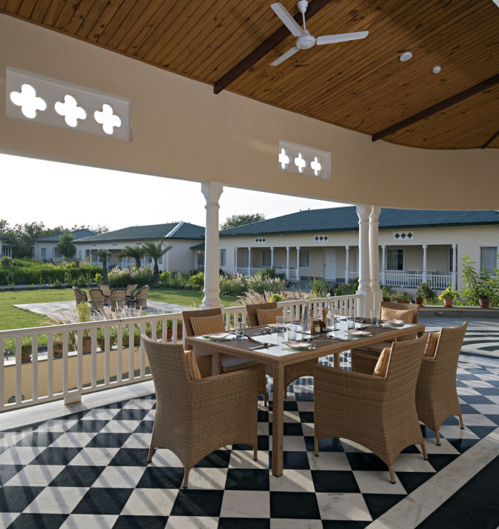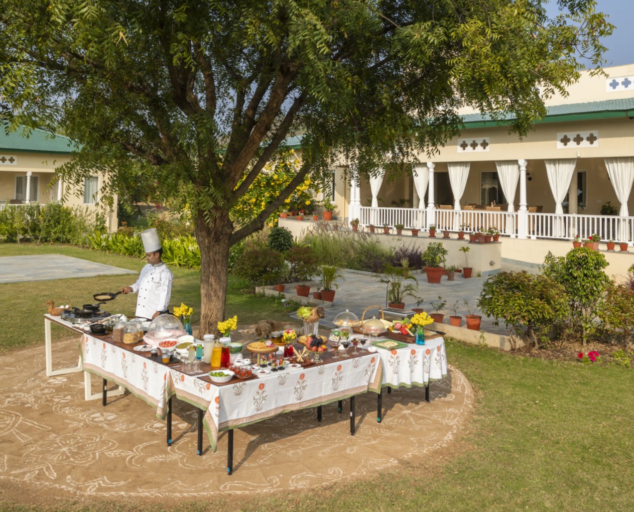 Spaced out in the lawn around the neem tree, our alfresco dining is perfect for a romantic dinner or a lively lunch with loved ones.