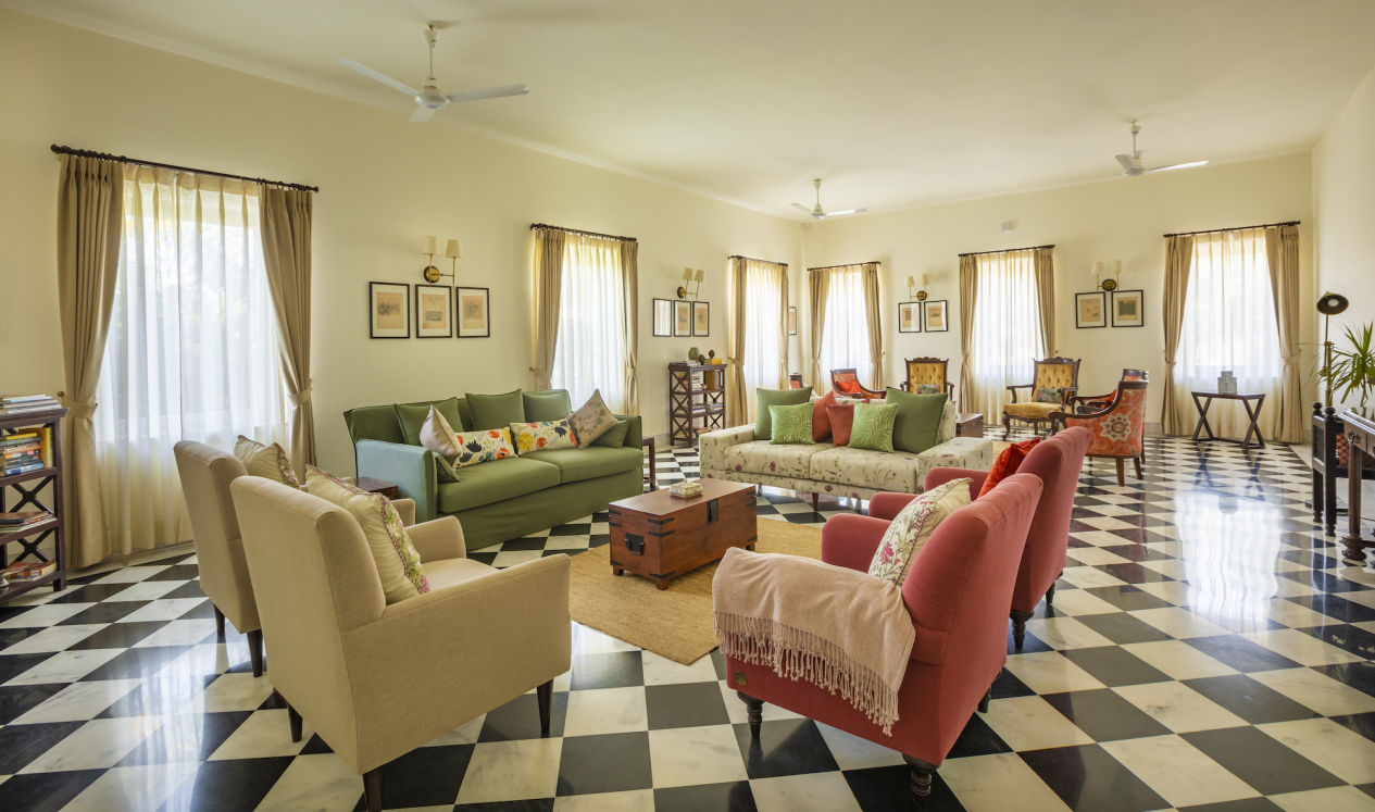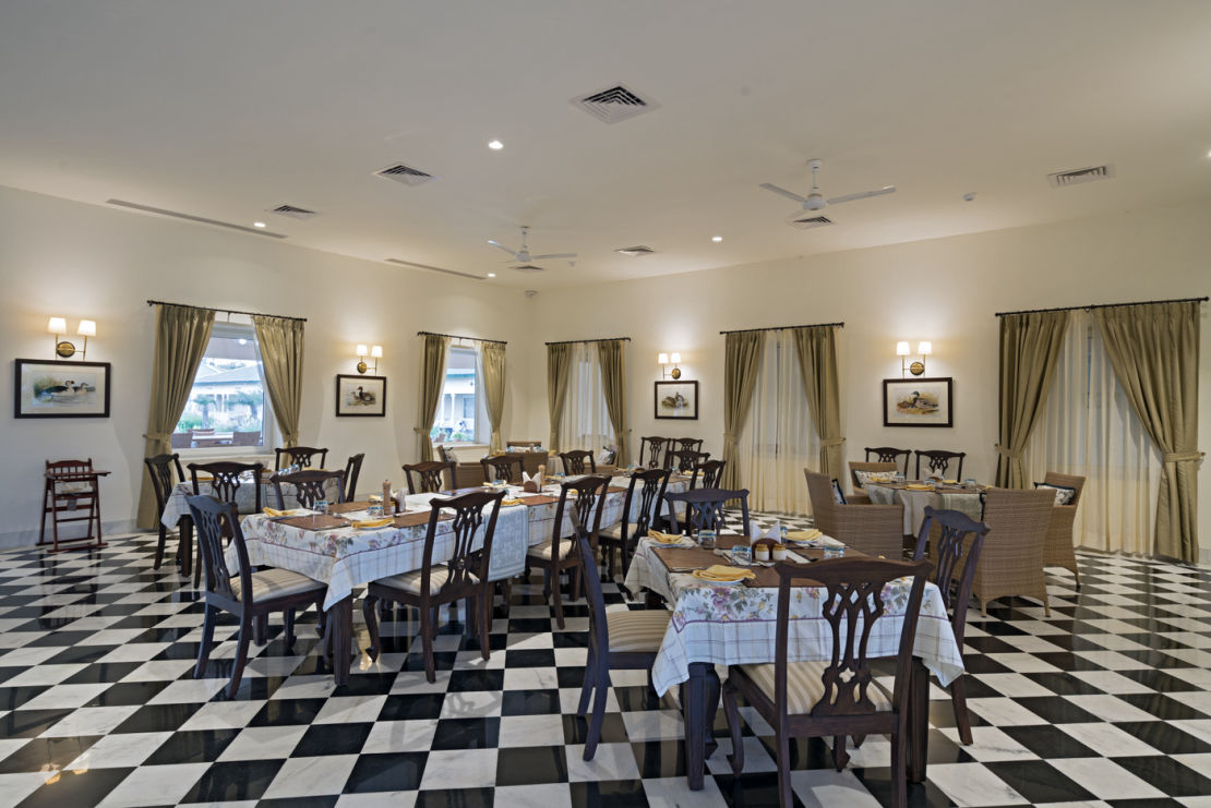 A debonair lounge, the Leopard’s Lair is designed for socializing, be it with loved ones or kindred spirits whose love for the wilderness and adventure has brought them to Sariska Manor. A bespoke collection of books goes perfectly with etchings, sketches and lithographs that hang here, setting the tone for an elegant experience.