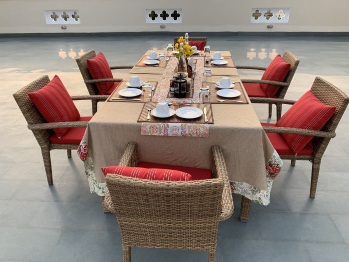 The roomy patio overlooking the Central Garden plays host to most of the meals at Sariska Manor. Lovingly christened The Sparrow, our guests spend hours together indulging in our delectables, sipping excellent coffee or just listening to the bird songs.